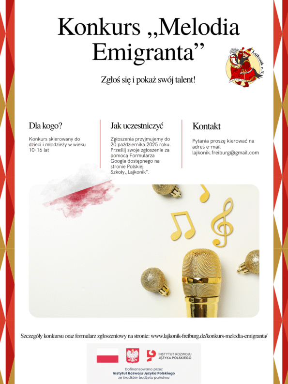 Konkurs „Melodia Emigranta” to inicjatywa skierowana do dzieci i młodzieży polonijnej, której celem jest umacnianie tożsamości narodowej oraz promowanie polskiej kultury muzycznej. Wydarzenie daje młodym uczestnikom przestrzeń do twórczej ekspresji, rozwijania talentów i aktywnej integracji z polską tradycją muzyczną.